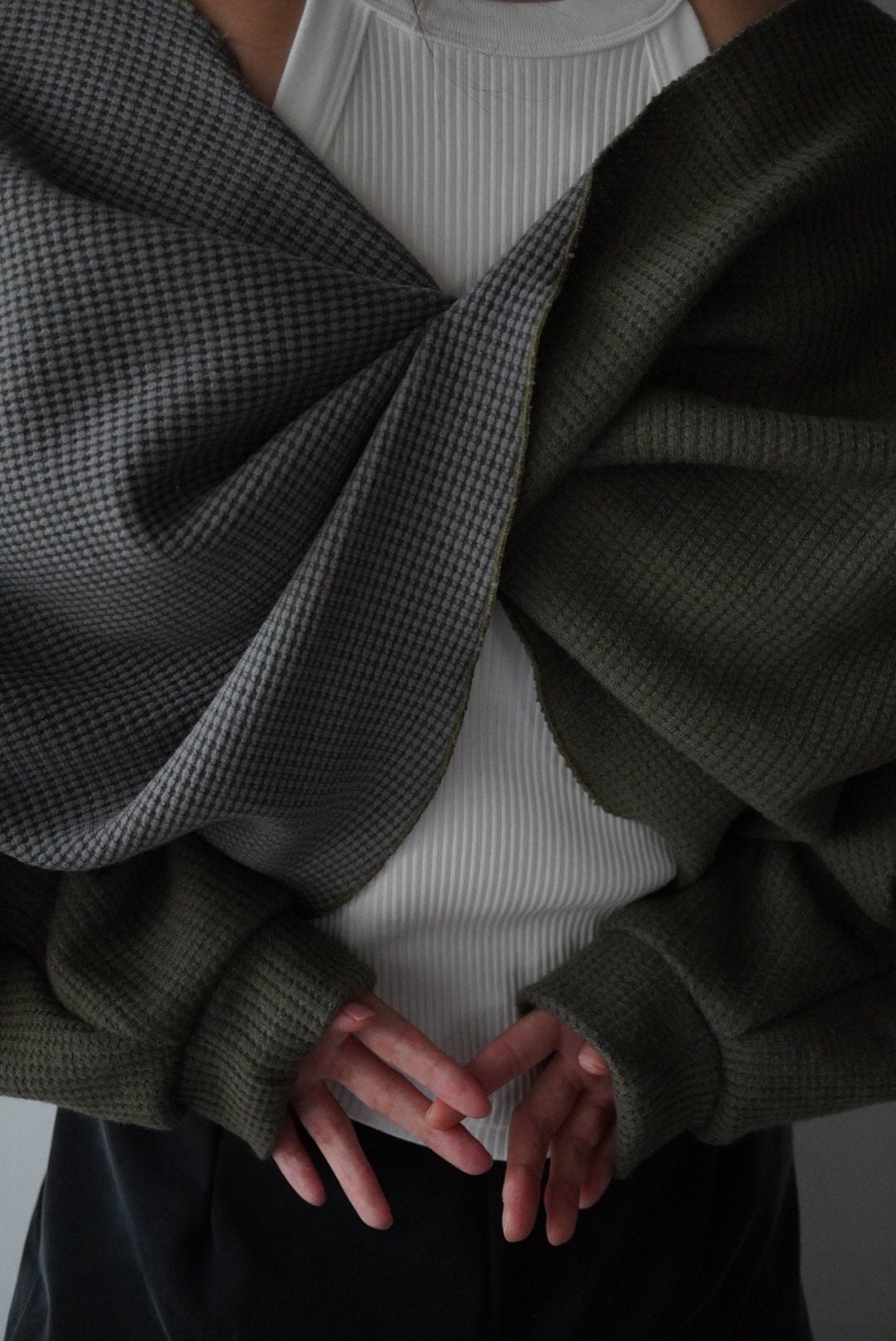 2色の糸を織り合わせた生地は、表情豊かで奥行きがあります。