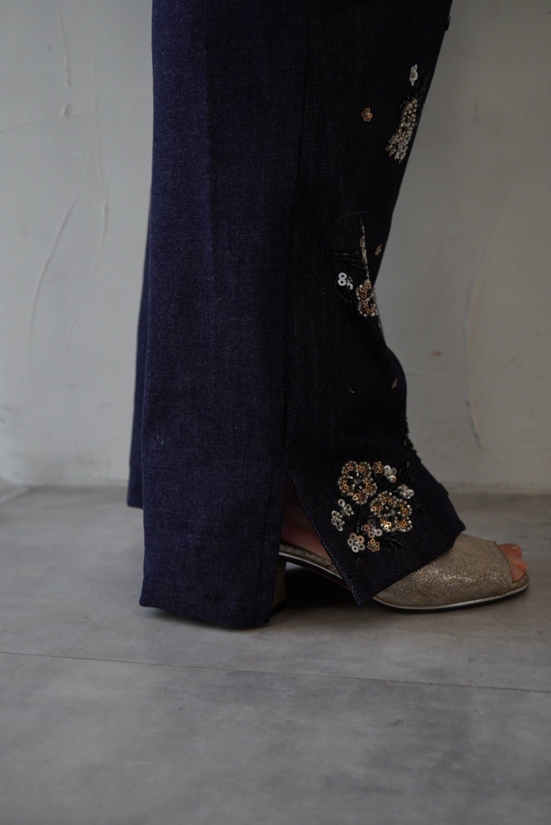生地を生かしたシンプルなシルエットながら、すっとラインの美しいパンツです。